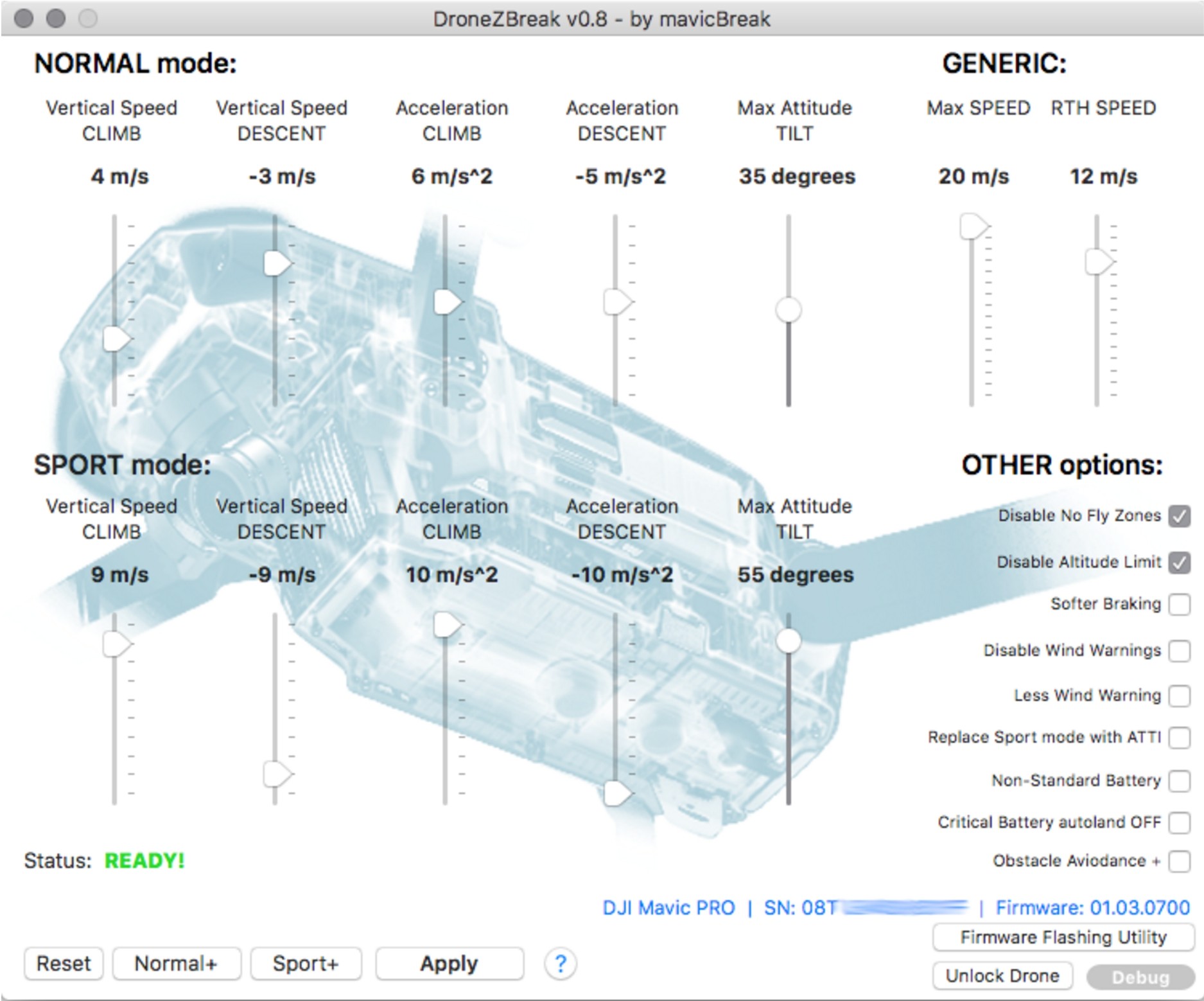 Известно, что по мере эволюции прошивок, DJI, с одной стороны, добавлял новые фишки (совместимость с очками, автоматические режимы съемки, и т.д.), а с другой - убирал возможности по редактированию параметров полёта.
